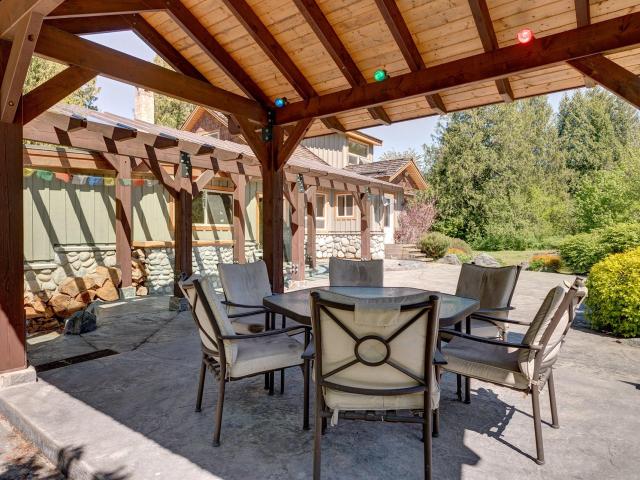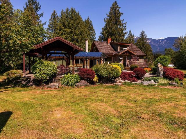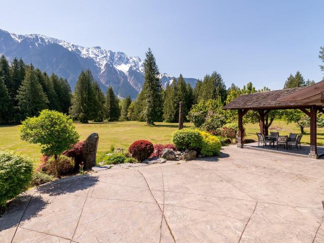 Nestled amongst the huge old growth Cedars, this 13.7 acre property has unobstructed views of majestic Mt Currie. This rare property features 4 bedrooms with many upgrades in 2003 such as windows, roof, septic, 2400 sq ft of stamped concrete patio, car port, granite counter tops and new roofing mebrane over flat roof in 2018. Surrounded by a mature perennial garden, the back patio is a perfect place to entertain and enjoy the expansive scenery . Located 5 km from the town of Pemberton and 25 minutes to Whistler.