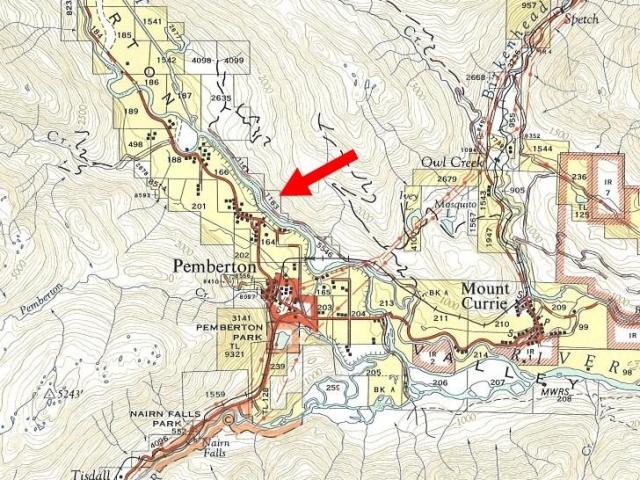 133 acres on the east side of the Lillooet River across from picturesque Pemberton Meadows. This sunny property is zoned RR-1 and can be subdivided into minimum 2.5 acres lots. Pemberton is enjoying a land boom at this time as people are discovering this paradise called Pemberton. To access the property a bridge will be required across the Lillooet River. An easement exists from Pemberton Meadows Rd to the river.