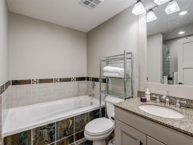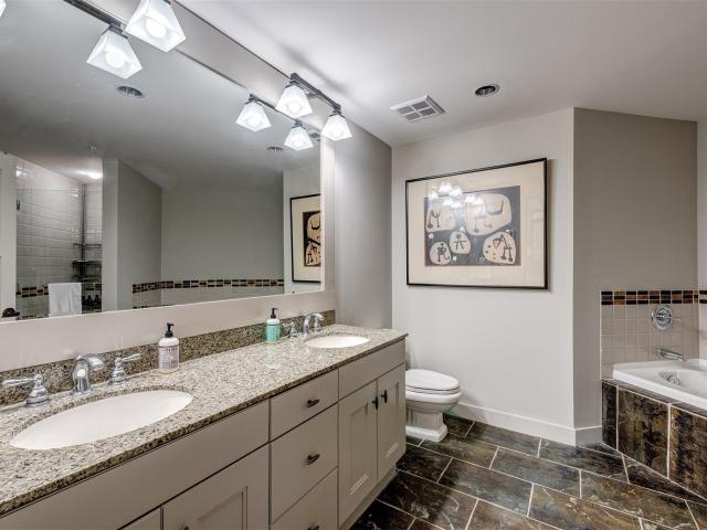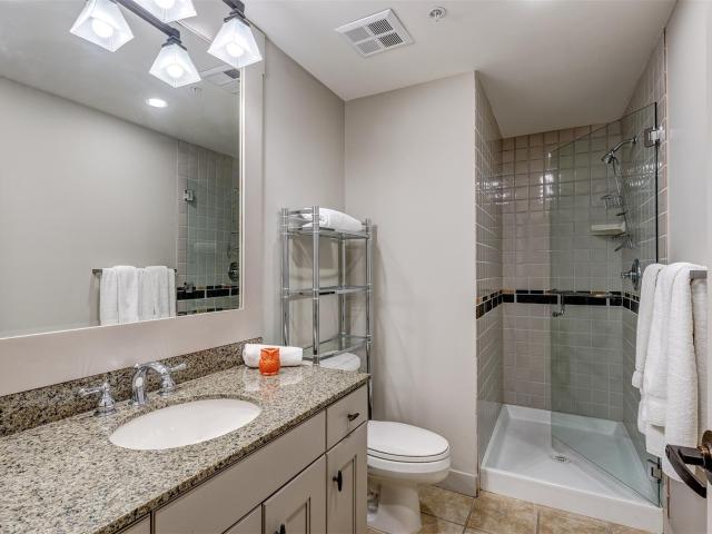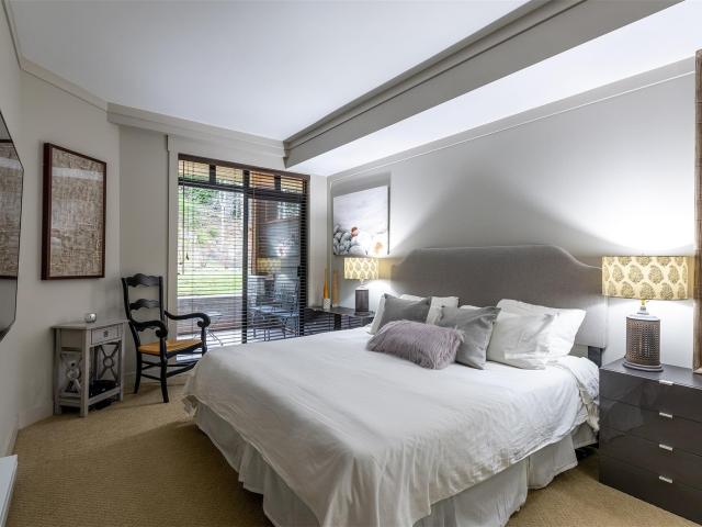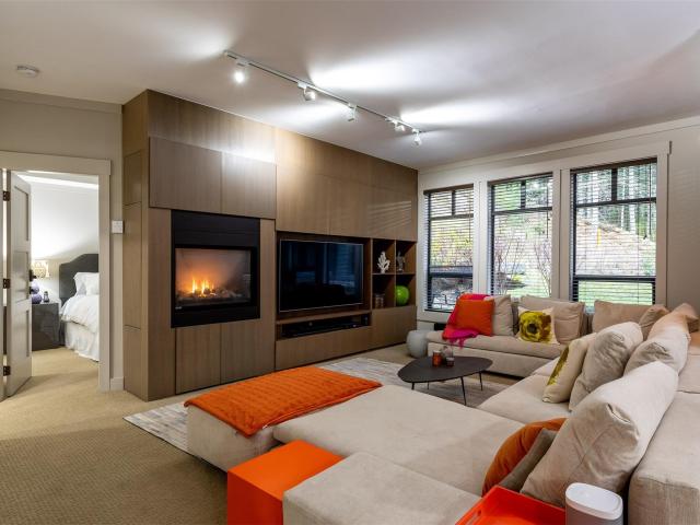 One-of-a-kind, beautifully renovated, luxurious 1486 sf two bedroom & den condo at First Tracks Lodge. This unit has been transformed from the original, dark, rustic decor into a magnificent, bright, airy, contemporary space with a 14' custom wall unit containing a high efficiency fireplace, 65" Smart 4K flatscreen TV and significant storage; all surrounded by massive Scandinavian "Eilersen" sectional unit perfect for enjoying hours of aprés-ski. Both bedrooms also now feature large flatscreen TVs directly in front of Kingsize beds (one with Essentia organic memory foam mattress). The den sofa bed has been replaced with a bunk + trundle to comfortably sleep three fully grown adults. You can walk right out of the dining room and bedrooms to a private, serene, lushly forested "backyard" perfect for children and pets to romp around in winter or summer. The originally supplied apartment sized washer/dryer have been replaced with a full-sized capacity washer/dryer perfect for extra-large loads of entire family's clothing and linens.