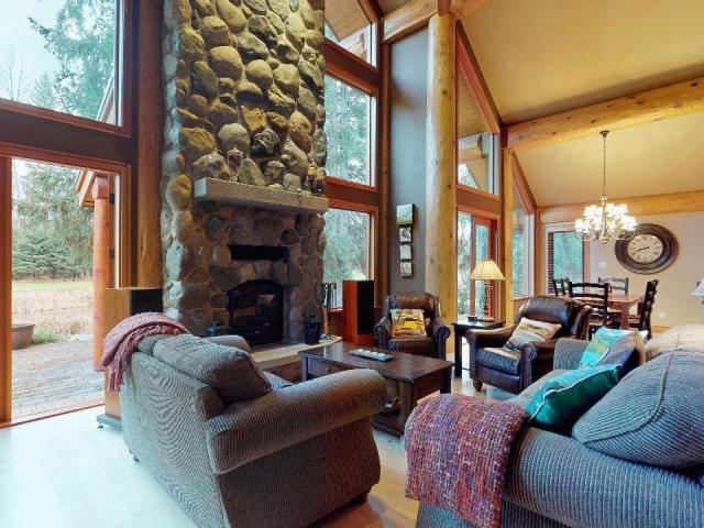 Overlooking the second hole of Nicklaus North Golf Course, features a 4 bedroom, 5 bath luxury post and beam home, walking distance to the club house. Along with the stunning views of Whistler and Blackcomb mountains, this property is surrounded by natural surroundings and provides ample privacy for the owners. This home offers vaulted ceilings, four bedrooms each with their own ensuite, outside hot tub and built-in barbeque, two car garage, and floor to ceiling river rock fireplace. Zoned for nightly rental or use for full time living.