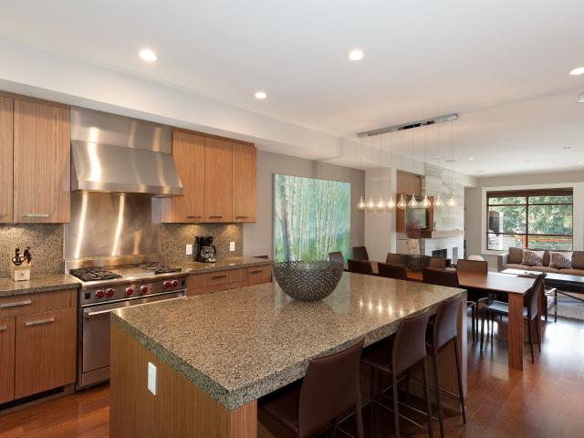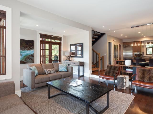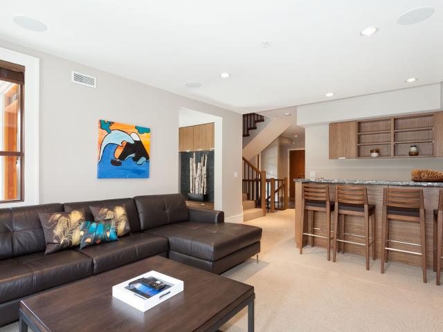 Bold contemporary design, clean lines and a sleek neutral palette shape this West Coast luxury townhome. Built in open concept, rich wood textures work alongside travertine stone and wool carpeting to create a mountain modern space offering 4 bedrooms and lower family room with bar. Vaulted ceilings and expansive windows frame Whistler and Blackcomb Mountain views, while the generously spaced outdoor areas with hot tub, dining and lounge area are perfect for entertaining with family and friends. Secure underground parking in a private double garage provides direct access to your home. Fitzsimmons Walk offers mountain views in a pedestrian oriented setting located within an easy 5-10 minute stroll from Whistler Village. Phase I zoning allows for nightly rentals and unlimited owner usage.
