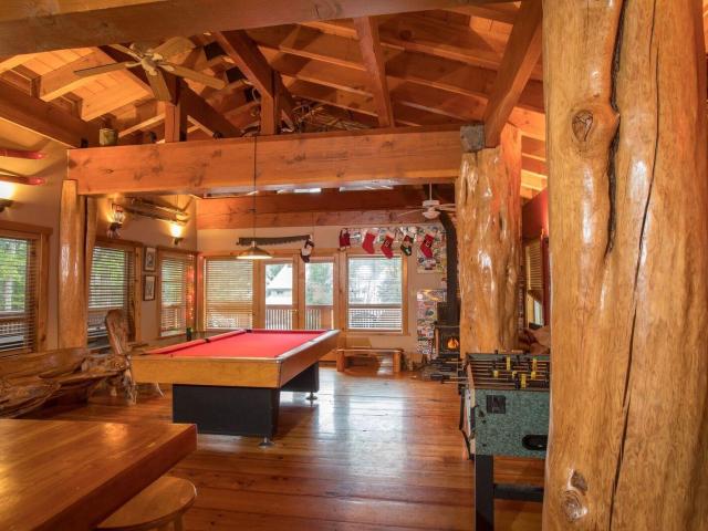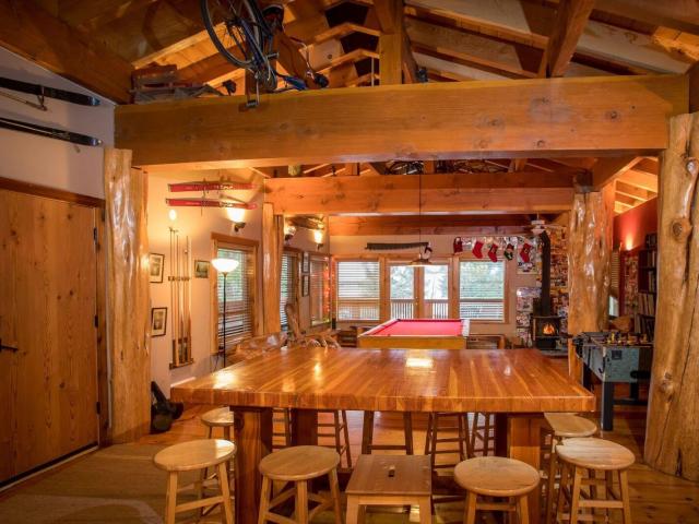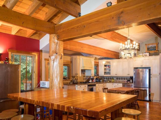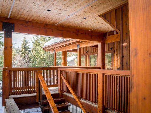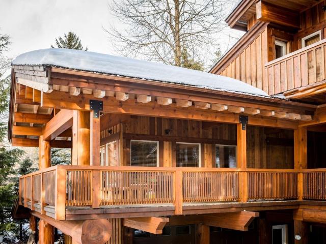 Amazing possibilities! Investors, families, this timber frame home in the highly coveted Whistler Cay location boasts south western exposures, generous parking, and peaceful green space behind. With placement of its ancient logs/timber inspired by Haida design and the ideology of Frank Lloyd Wright, there totals 4710 square feet of Whistler bliss, large covered vaulted decks, and extra sized double garage. Private and tranquil this chalet lends itself to unlimited imagination. Create an incredible family experience in a prime location, walking distance to the village, trails, lakes, beaches and directly adjacent to Myrtle Philip School.