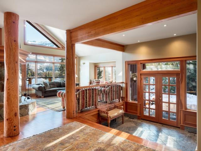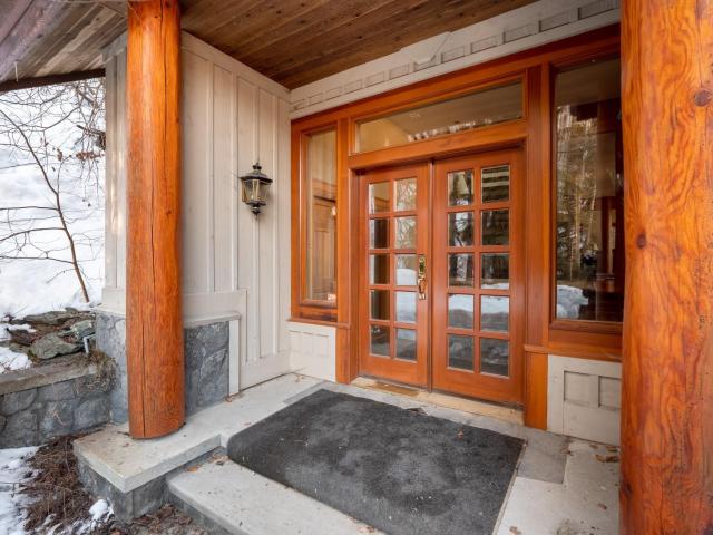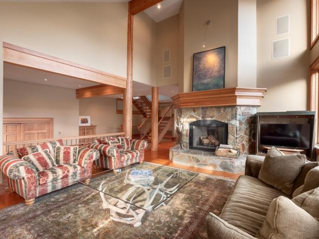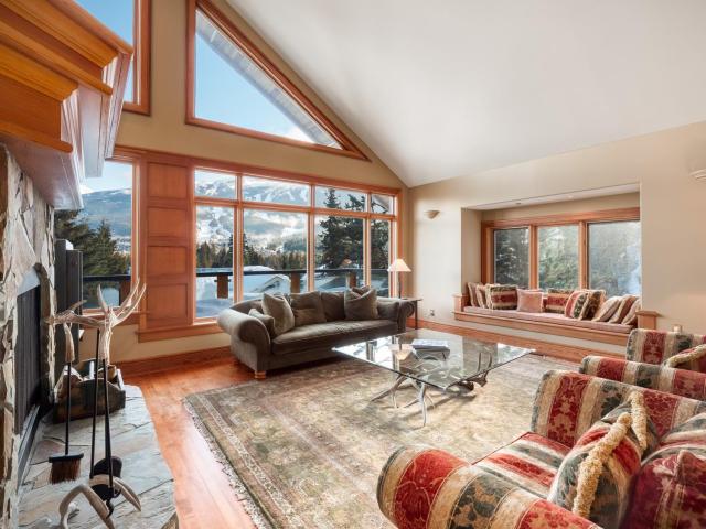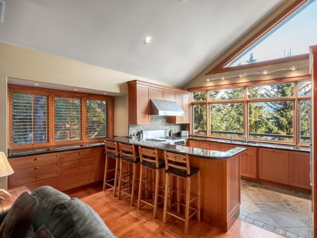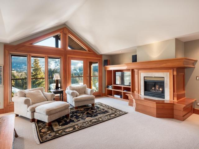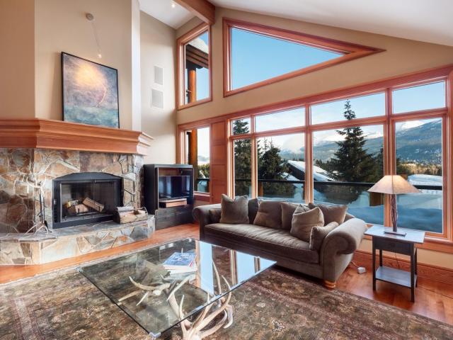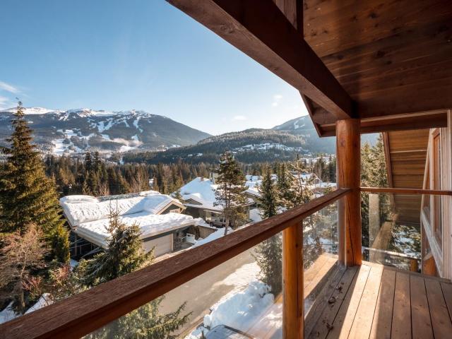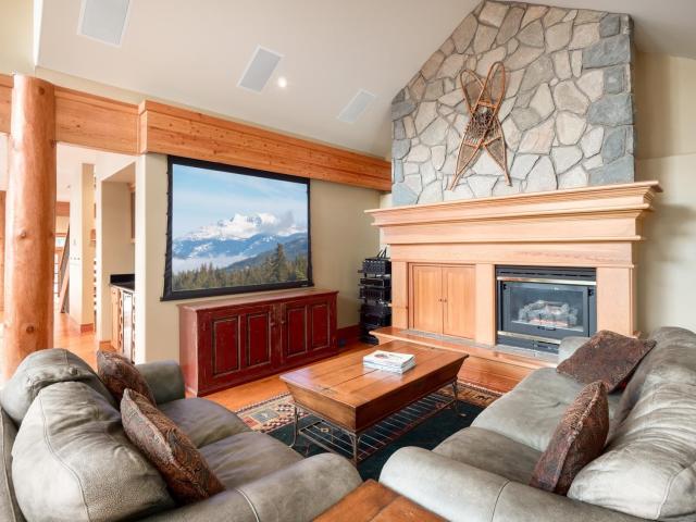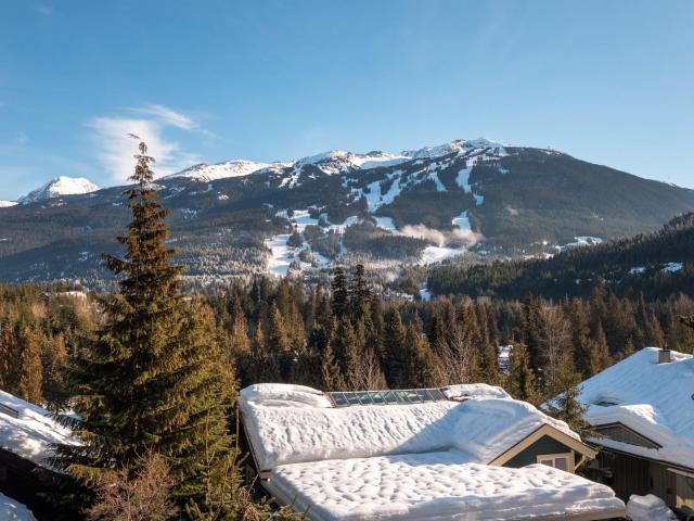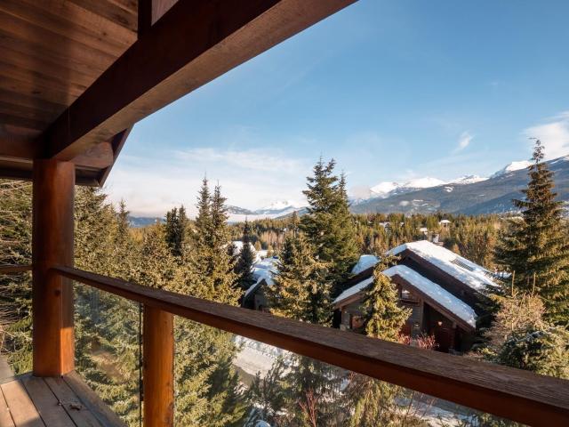 Captivating, one-of-a-kind chalet with panoramic views of Blackcomb located in prestigious Blueberry Hill. This expansive apx. 4,000 sq ft 4 bed/3.5 bath home is elegant and grand. The living area, with vaulted ceilings, large sun-flooded windows, hardwood flooring & 2 fireplaces is magnificent with its' commanding views. Enjoy the evening alpenglow from your large deck or cook and entertain in your gourmet kitchen with adjacent dining area and cozy family room with projector screen and fireplace. Wake up to sweeping views in your master-suite with 5 piece spa-like bathroom, fireplace and bonus den/office space. Downstairs you'll find 3 beds/2 baths, a wine room and large garage perfect for your cars and Whistler toys. Located only a short stroll to Whistler Village, valley trails and beyond - you couldn't ask for more!