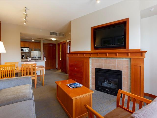 Seldom available! Beautiful one bedroom suite, with view, in the Pan Pacific Mountainside. In 2018 Pan Pacific Mountainside was rated No. 2 of 'Best Resorts in Canada' by readers of Conde Nast. The premiere ski in, ski out location is at the bases of Whistler and Blackcomb Gondolas and adjacent to excellent restaurants and beguiling boutiques. Choose to stay close to home and visit the Dub Linn Gate Pub and Restaurant on site, a happening apres ski venue, or unwind with a swim and hot tub on the hotel deck overlooking the sights and sounds of the Village. If you prefer, curl up by the cozy fireplace in your suite after a relaxing time in the soaker tub. Enjoyment is guaranteed. Private ski locker & parking privilege. Excellent rental income is a plus. Phase II zoning.