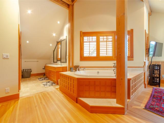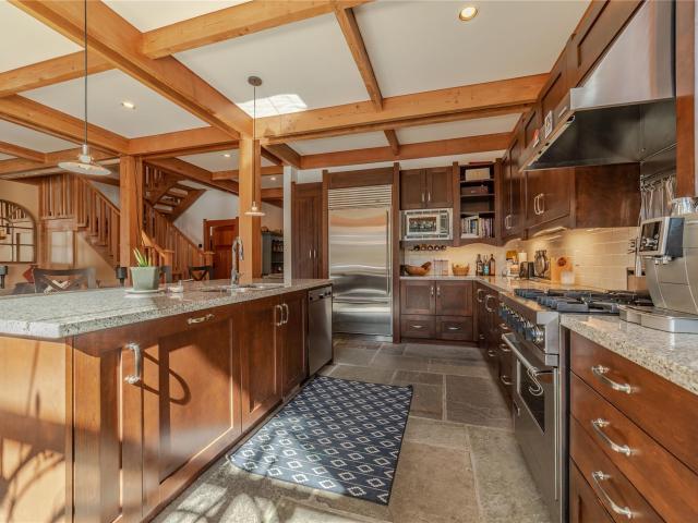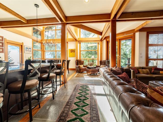Enjoy the views of Whistler Peak and the Dave Murray Downhill from your patio Hot Tub. Picture your family skiing or riding home for lunch. Walking down to Dusty's or shopping without having to get into your car. In the summer the bike park is right there as well. Fine dining is a short walk, as are the two lakes in the Creekside Area. Sleep well with the sound of Whistler Creek running outside and breathe the cool mountain air. This is truly a healthy place to reside. The 3440 square foot, five bedroom plus den, 4.5 bathroom home is very versatile. Zoned for nightly rental you can separate the income with a 2 bedroom, 2 bath suite and or a 3 bedroom plus den home.
