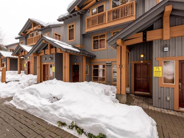 Welcome home to unit 30 in The Bluffs! The Bluffs is located 50’ from Whistler Mountain where you can SKI-IN/SKI-OUT! This townhome is spread out over one level; 2 generous bedrooms and 2 full bathrooms plus an open and spacious living plan with over height ceilings. A sizeable boot room greets you as you enter, continue down the hallway to the living area where you’re greeted with a wall of windows capturing tree and mountain views! Secure underground parking leads right to the front door. Hit the complex hot tub after a day on the slopes, then relax by the natural gas fireplace with rock and log surround. Nightly rentals permitted, potential to earn over $100k in yearly rental income! No GST. www.30thebluffs.info