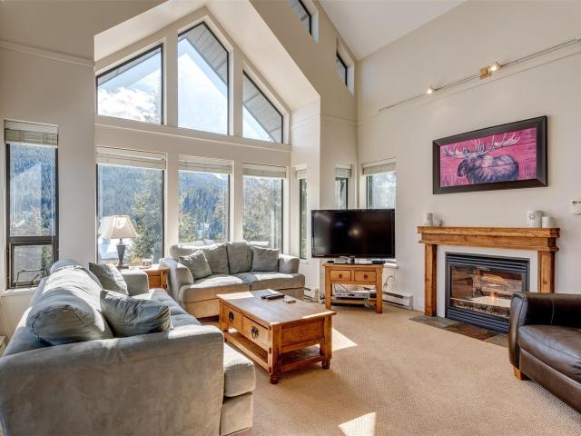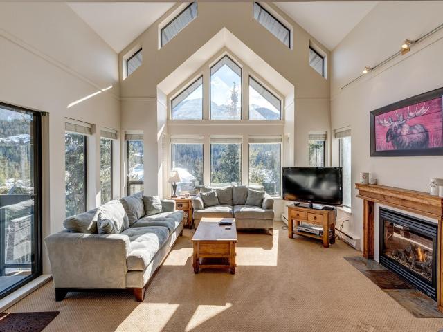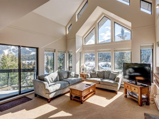Step into your home away from home with this spacious condo located in the highly sought-after Blueberry Estates. This 4.5 bedroom 3 bathroom end unit offers stunning views of both Whistler and Blackcomb mountain. With vaulted ceilings, a spacious open concept living/dining area ideal for families or entertaining and over 2200 sq/feet of living space, this fully furnished, turn key unit could be your perfect mountain getaway. Ideally situated by the valley trail, it`s just a short walk to the village and Alta lake. Building amenities include underground parking, additional owner lockers, secure ski & bike storage and a games room. GST is not applicable. Call today for a private showing.