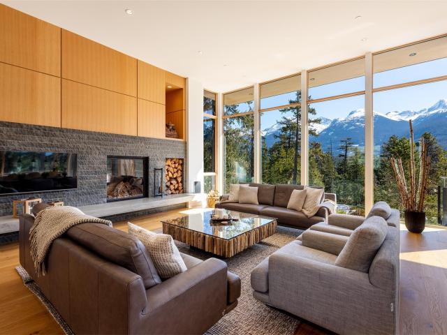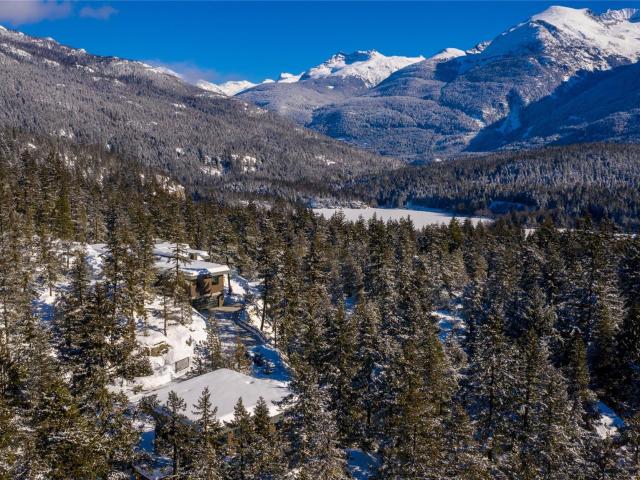 Absolute serenity awaits! This stunning 10+ acre gated estate property is perfect for the discerning buyer who values total privacy and the most amazing panoramic views in Whistler. The Scandinavian inspired luxury home offers 4,570 sq/ft with 4 bedrooms and 4.5 bathrooms built to the highest standard with quality finishes throughout providing a seamless sense of indoor & outdoor living space with all day sun and endless mountain and forest views from every room in the house. The main level includes an open concept living room, dining room & gourmet kitchen all with floor to ceiling windows. The guest wing has 3 bedrooms all with ensuite bathrooms. The well thought out floorplan includes an office, cozy media room, reading nook, a climate-controlled wine cellar, pantry and spacious laundry room. The separate master bedroom area includes a generous walk-in closet and spa-like ensuite overlooking a natural pond creating a perfect sense of tranquility. Over 1,400 sq/ft of patio spaces with an outdoor kitchen/BBQ area, overhead heaters and gas firepit is perfect for entertaining. On the lower entry level there is a mudroom, an oversize heated 2 car garage with bike and ski storage and heated workshop/storage room. The separate 928 sq/ft coach house offers 2 bedrooms, 2 bathrooms, large balcony with great views of Whistler Mountain plus a single car garage and carport. The coach house provides flexibility for great rental income, a guest house, in-law or nanny suite. 9521 Emerald Drive is a custom estate that absolutely needs to be seen to be believed. There is nothing like this on the market, so call today to make your appointment to view!