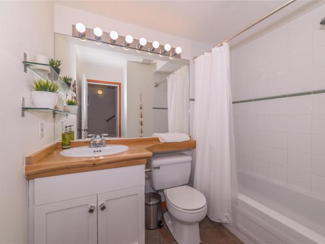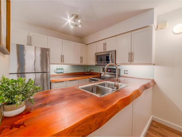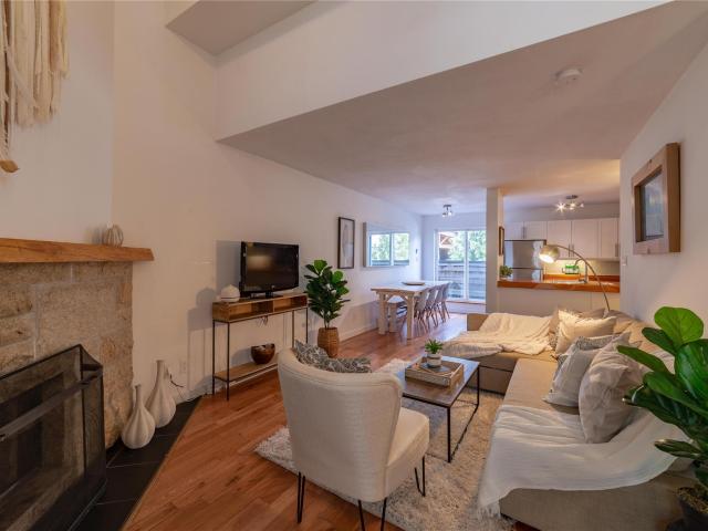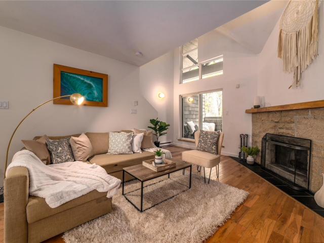 In popular 2222 Castle Estates you will find this 2 bedroom, 2 bathroom townhouse with 1 car garage and 3 decks! This updated home has a lovely wood burning fireplace, hardwood and tile flooring throughout, vaulted ceilings, custom wood countertops, stainless steel appliances, lots of natural light, and an accessible back yard because of its unique location in the complex. Nordic is a popular neighbourhood close to both the Village, lakes, and Creekside. This complex is known to be quiet and very family friendly. The perfect home for full-time living or use as your weekend retreat.