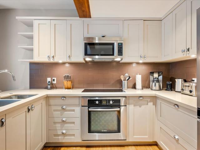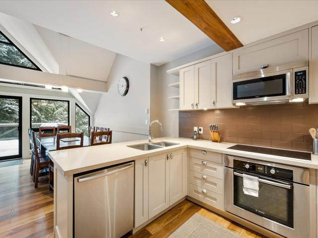 Ski In / Ski Out luxury townhome in one of Whistler’s most sought-after complexes, Pinnacle Ridge, located on the slopes on Blackcomb Mountain. Step inside and discover the perfect blend of modern elegance and rustic charm. The spacious living room features vaulted ceilings, a stunning, energy-efficient wood-burning fireplace, providing the perfect ambiance for cozy nights in with family and friends. The functional kitchen is equipped with high-end Bosch stainless steel appliances and offers ample space to prepare delicious meals and entertain guests. Featuring 5 bedrooms, plus a den and 5.5 bathrooms, this highly efficient floorplan set over three levels has plenty of room to accommodate a large family or group. Unwind on one of the two decks, including a private hot tub, surrounded by nature. There is also a single car garage, offering ample storage for all your Whistler toys. When you are not enjoying the property yourself, you have the option to earn great income as a high-end vacation rental.