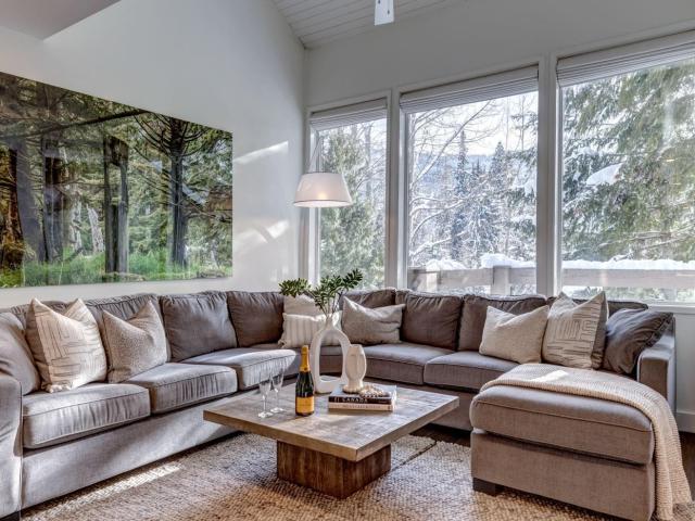 Luxury, quiet living next to the main village in this stunning Whistler Cay Heights five-bedroom townhouse. This home is the perfect space for entertaining and accommodating a large family with views over the golf course to Whistler mountain. With an exquisitely renovated main floor, the 1,873 sq ft includes four baths, vaulted ceilings, induction range, BOCCI pendants, and a wood-burning fireplace. Two large sundecks create the perfect summer venue. Park underground with two spaces just outside the cabin and keep bikes and other items in an outside locker and workroom. Located only a 10 min walk to the gondola, this is the ultimate Eagle Ridge home or weekend retreat with convenience and security. Inquire today about this rare opportunity!