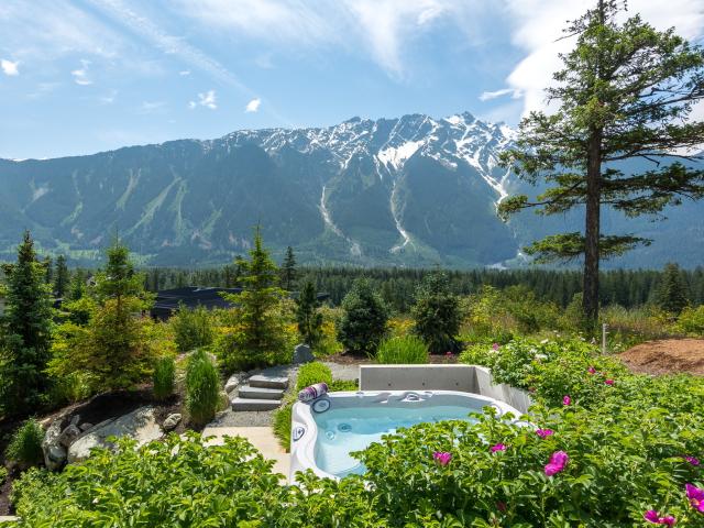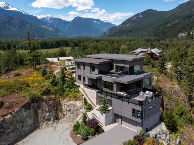 Perched high on a bluff, overlooking Pemberton Plateau, this contemporary residence offers a blend of raw material accents with modern sophistication. Commanding mountain views dominate this home, while light fills the open concept design that blends indoor/outdoor living seamlessly with large slider opening to an expansive deck with views of Mount Currie. Additional outdoor spaces can be enjoyed from the unique vantage point; from wild mountain alpine-inspired garden that envelopes the hot tub, to the master bedroom deck offering space for quiet reflection. Recently constructed by Newlines Contracting, every detail has been considered with generously sized en-suited bedrooms & family room in the main residence, an additional self-contained suite, A/C throughout and oversized garage to perfectly suit the weekend warrior or year-round outdoor enthusiast.