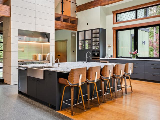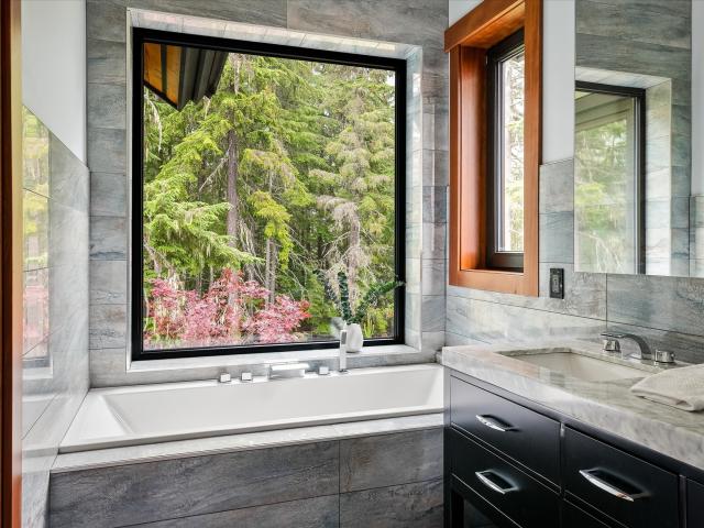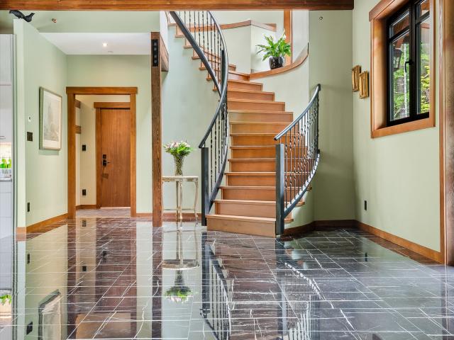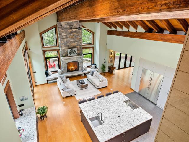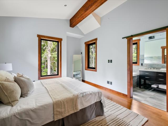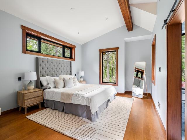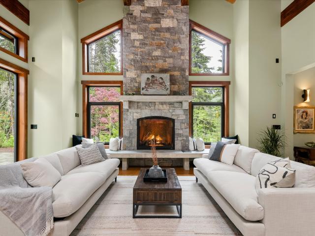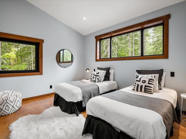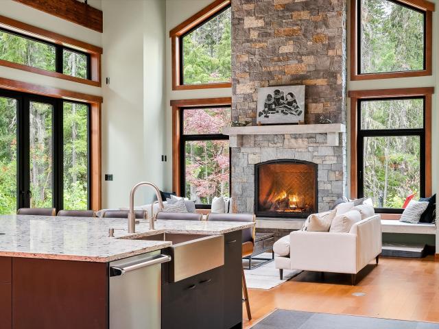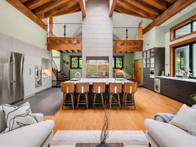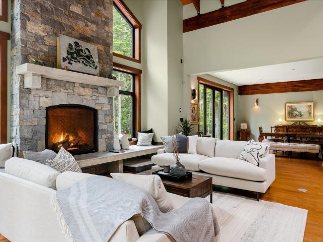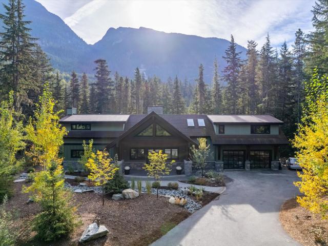 Located in the desirable community of WedgeWoods, this architectural masterpiece is set upon a sprawling private acreage featuring panoramic mountain views, mature landscape, and the sounds of the rushing majestic Green River. Inspired by the beauty of the outdoors, the design includes; exposed vaulted timber and warm wood tones, soothing colour palettes, vast luminous windows, and the luxurious warmth provided by the natural stone-clad fireplace. Designed for premium entertaining each bedroom features; an ensuite, walk-in closets, and there are two primary suites to choose from. The grand kitchen features; commercial grade gas range, high-end wall ovens, Meile coffee maker, massive side-by-side fridge freezer combo, arguably the largest and most equipped kitchen island and pantry you’ve ever seen. The chalet has recently been completed to a premium luxury standard by a prominent local builder who intended it for his own family. Masterful architecture by DVAD considered every element of the spectacular building lot and captured each stunning mountain view in a window frame. The flat building lot and zoning also allows for another auxiliary building up to 2150 sq ft. The quality this home represents is that of a purpose-built, custom-build which is rarely available new as a spec home. GST applicable.