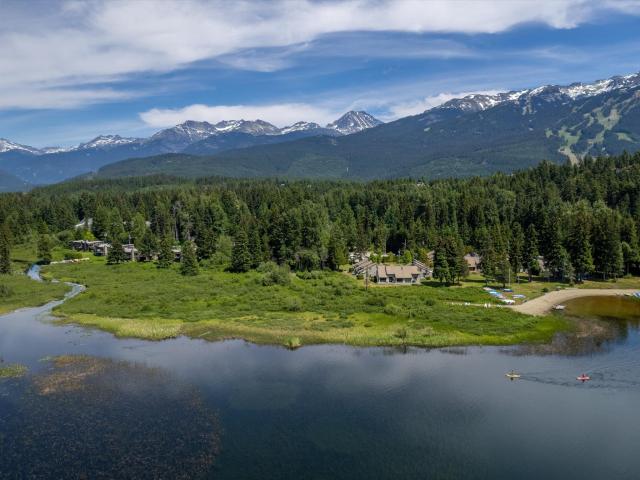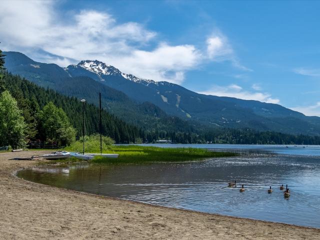 Whistler waterfront! Adventures West Lakeside is one of Whistler's special areas: a quiet, residentially zoned neighborhood with private swimming beach, expansive lawns, towering trees, and some of the best views in the valley. This wonderful townhome has a premium front & center location and features 3 comfortable bedrooms and 2.5 bathrooms. It has a cozy wood burning fireplace, full kitchen, and in-suite laundry. It's in great condition and is offered turn-key for your family's immediate enjoyment. There is plenty of open parking and private storage for your kayaks, canoes, and SUP's. This is an incredible opportunity to own a rarely available family homestead on the shores of Alta Lake. Come have a look!