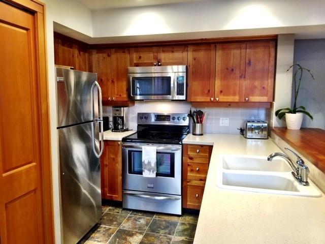 Welcome to #25 Treeline on Blackcomb Mountain where you'll have direct access from the slopes, free shuttle to and from the Village & Blackcomb base areas. You are also only a short walk, spin or run to trails and beach at Lost Lake. This end unit 2 story townhouse, with no one above, was substantially renovated in 2018. Upgrades included wood floors in the main living area, updated kitchen, additional sound proofing and more. The 2 story layout is ideal for families with bedrooms on the same level and no stairs to your front door. Enjoy hanging out with friends and family in front of the wood burning fireplace after a day of adventure in Whistler. The Treeline complex features a shared outdoor hot tub and underground parking. Nightly rental zoning allows for flexibility of use. GST is paid.