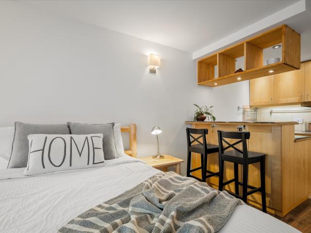Charming studio on the quiet side of Highland Annex offers the perfect mountain getaway in an enviable location minutes from the Creekside Gondola - NIGHTLY RENTALS PERMITTED. With a functional layout, heated flooring in the foyer and bathrooms, granite counter tops in the kitchen and new flooring throughout, this unit has been transformed into a modern, inviting retreat. With two storage lockers and a common area bike room, this property is an excellent investment opportunity, an ideal first home, or a dreamy vacation escape in the sought-after Whistler area. Don't miss out on the chance to own this opportunistic property and experience the best of mountain living!