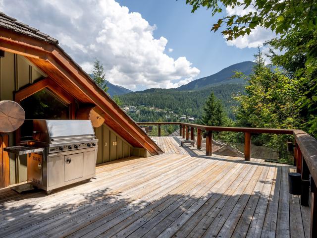 Panoramic mountain views encircle this elevated residence perched on the desirable Blueberry Hill, within walking distance to Whistler Village. Superior workmanship compliments its chiselled natural surroundings, with custom masonry, exclusive millwork features and exquisite architecture delivering a sense of mountain luxury. Sweeping views from Whistler Mountain in the south to Armchair and Wedge Mountains to the north equally dominate indoor and outdoor living spaces. A large kitchen and dining area, grand living room, break-away areas and massive, sun-drenched roof top patio provide ample space for large groups or families while each large bedroom provides a place for visitors to retreat. Nightly rentals permitted.