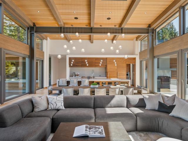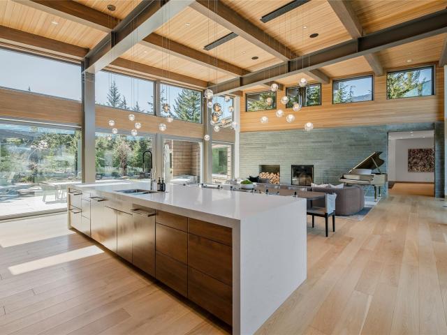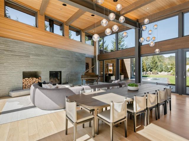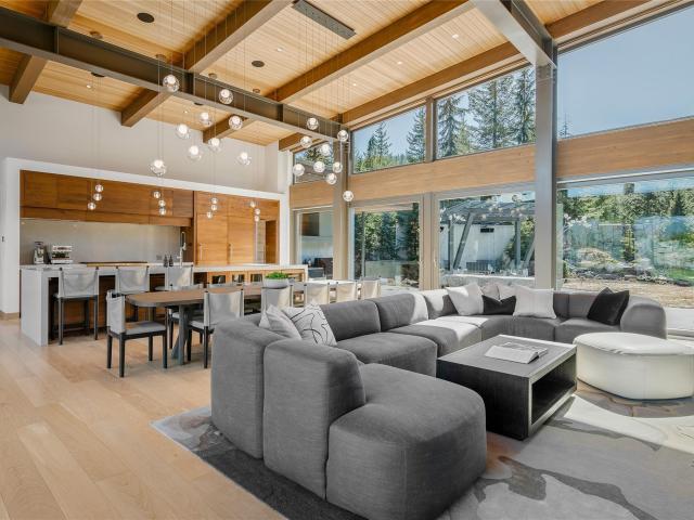 At the end of a winding 300-foot driveway, flanked by locally sourced basalt stone columns, sits one of Whistler's most unique and architecturally significant estate properties. Completed in 2018, this 5000sqft rancher-style masterpiece represents the pinnacle of Whistler living. Every imaginable feature has been incorporated to create the ultimate mountain retreat: 4 bedrooms, all with private en-suite bathrooms, an expansive wellness-space, indoor and outdoor dining, full featured outdoor kitchen, extensive storage, outdoor sauna, basalt stone waterfall features, custom outdoor stainless steel hot tub and fire lounge area, and more. The home also features a state of the art solar energy system, a full-featured automation system, with only the finest materials and fixtures throughout.