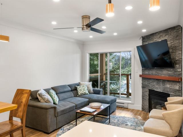 Whistler Village townhome an abundance of private outdoor space, modern interior design, and gorgeous mountain views. The versatile floorplan allows for a lock-off "hotel-style suite" for those wishing to maximize rental and owner use options. More amazing features include; complex pool, hot tub, private laundry, convenient location, stunning kitchen with quartz counters, stylish feature walls, high-end furnishings, new window coverings, new appliances, gas burning fireplace and luxurious 470+ sq ft private deck with outdoor lounge & new Beachcomber hot tub. Zoning allows for unrestricted owner-use, nightly rentals or long term rentals.
