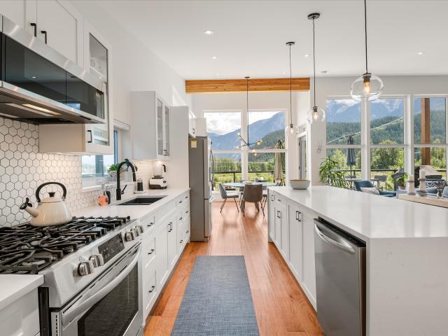 An oasis at Tiyata Village in downtown Pemberton, this quality custom home built by Dorgelo by Design was architecturally designed by Allie Schiell to maximize light and Mount Currie views. Large open concept living room, dining and kitchen feature floor to ceiling windows taking full advantage of the commanding views of majestic Mount Currie. 2 large covered decks provide a fabulous outdoor space to enjoy it all as well as manicured front and back yards with a gas fire pit for outdoor fun under the stars. This home boasts well proportioned and generous spaces that make it ideal for family living or entertaining. Features include three bedrooms, 2.5 bathrooms, an office with custom cabinetry and a custom finished pantry. Storage spaces have been maximized including a massive crawl space workshop with exterior entrance and a large storage shed with a roll-up metal door in the car port. A must see, this home is one of the most remarkable Pemberton properties on the market today.