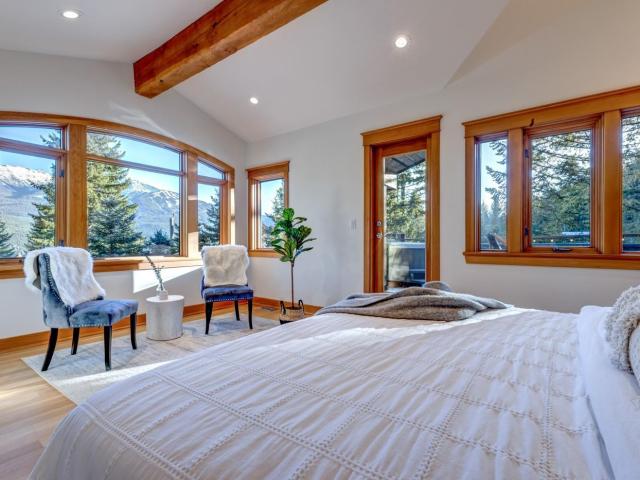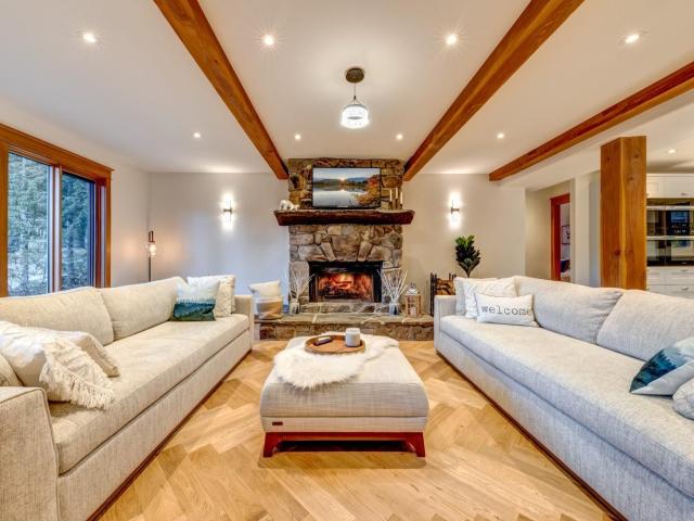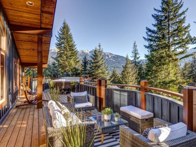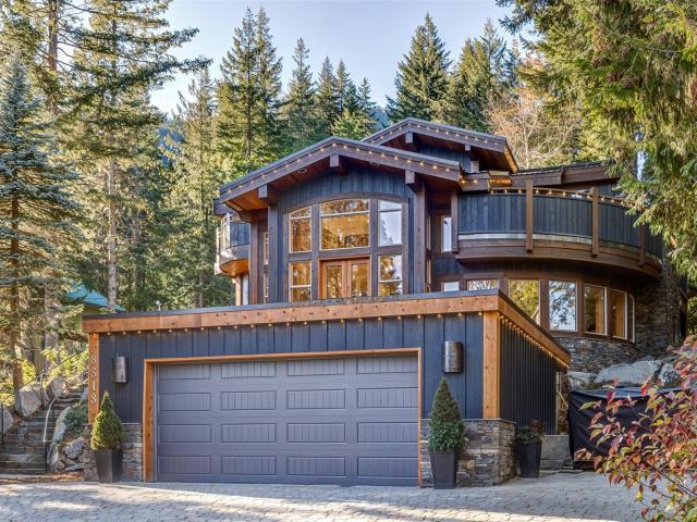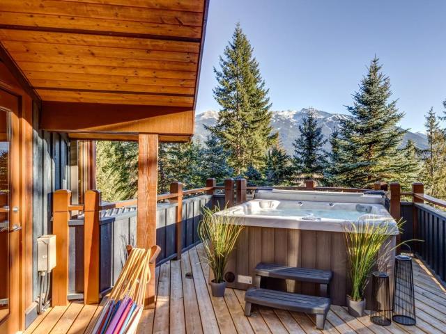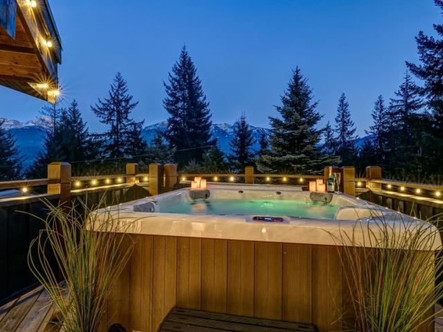 Experience ultimate mountain luxury with this sensational 5-bedroom, 4-bath post-and-beam masterpiece at the top of Mountain View Drive. Set on a spacious 13,044 sq ft lot with 3,520 sq ft of refined living space, this home showcases sweeping Whistler and Blackcomb vistas through grand windows that flood the interior with light. Three fireplaces warm elegantly crafted spaces, while the chef’s kitchen, featuring oak cabinetry, Miele appliances, and heated tile floors, forms the heart of the home. Upstairs, three large bedrooms open onto a south-facing patio with a hot tub. Luxurious bathrooms offer marble vanities, copper and stone bathtubs, and heated floors. A double garage with room for your gear completes this magnificent retreat, perfect for your family and adventures.