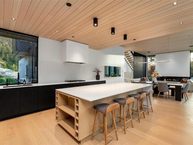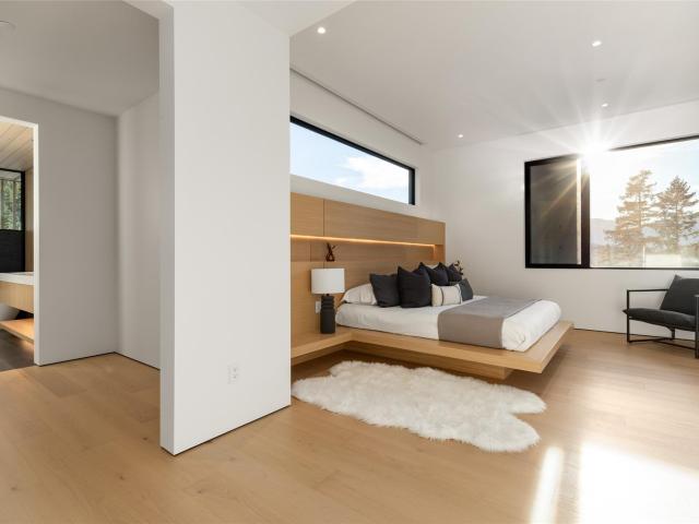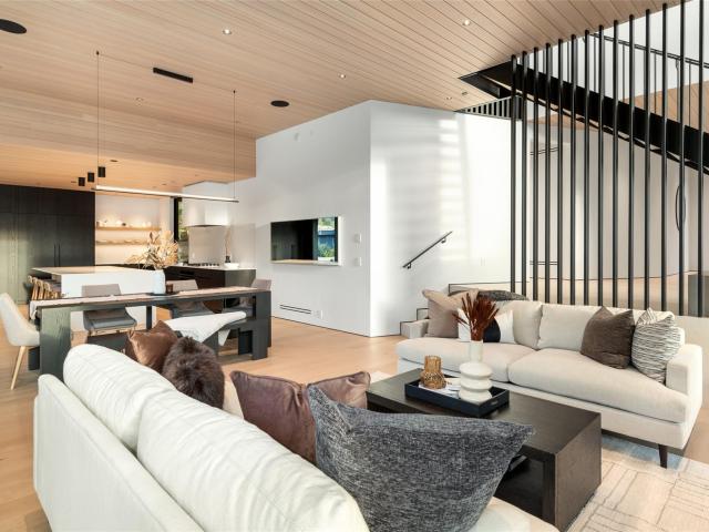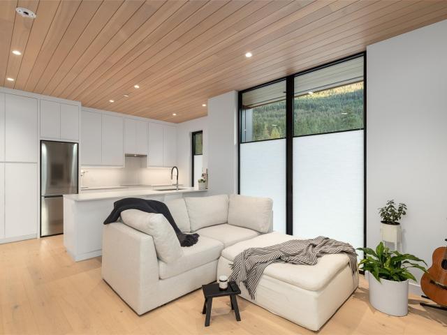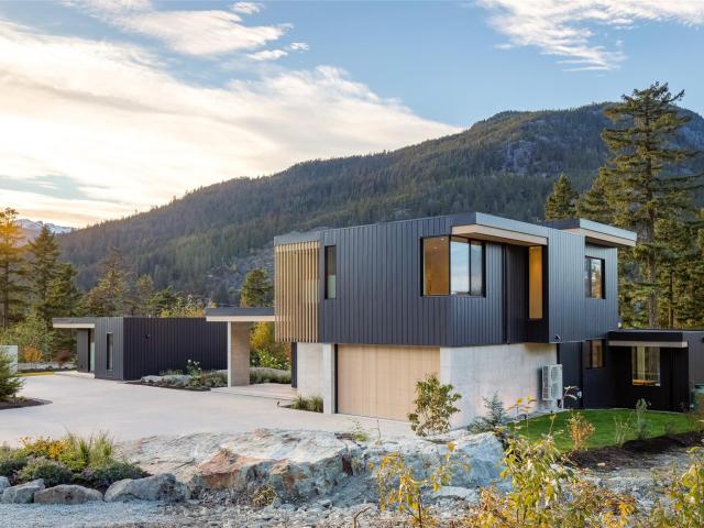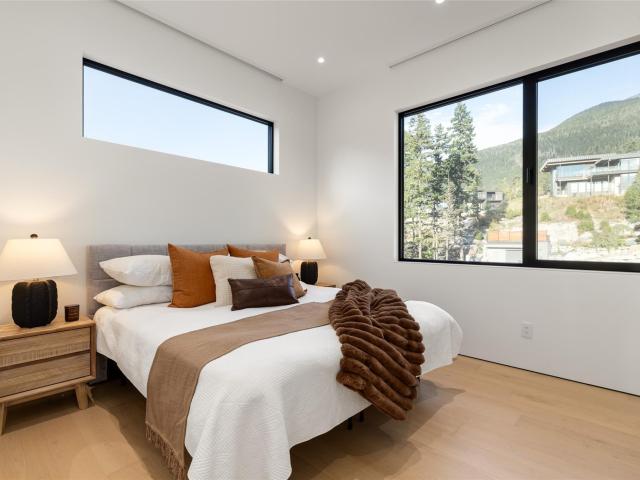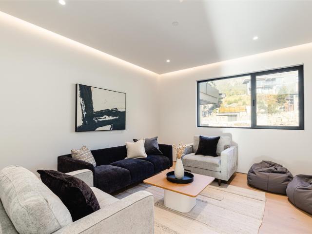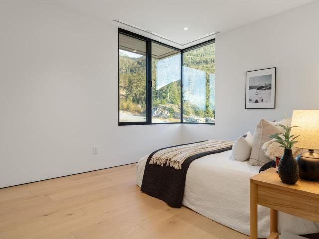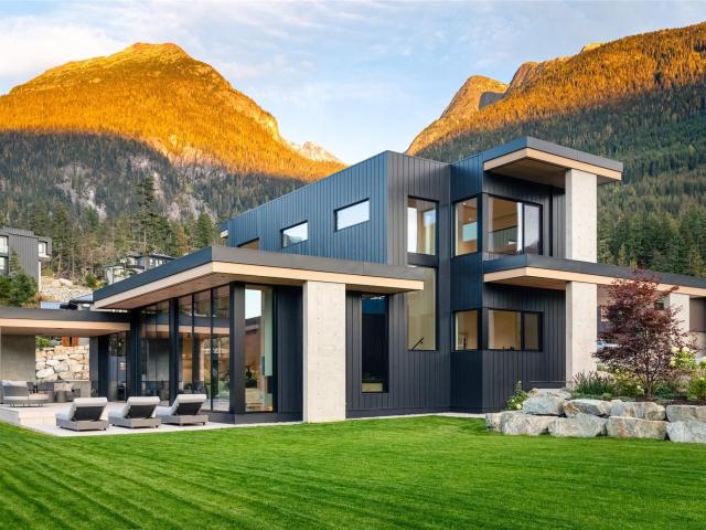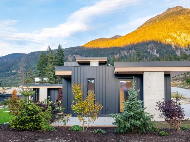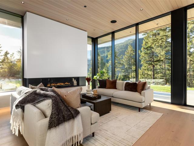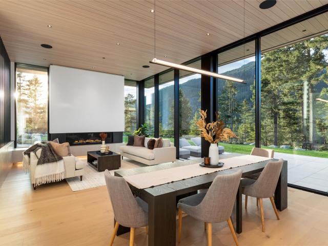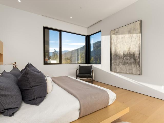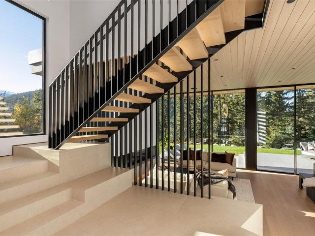 Refined mountain living with over 4000 sq ft of total living space awaits in this 4-bed + media, 4-bath modern home. The 3,402 sq ft main residence blends architectural concrete, oak flooring, and large-format porcelain tile with smart technology. European glazing and custom floor-to-ceiling doors frame mountain views and create seamless indoor–outdoor flow. A 72" fireplace anchors the open living area, while the chef’s kitchen with paneled Fisher & Paykel appliances elevates entertaining. A Control4 system manages lighting, audio, shades, and comfort. The 629 sq ft 1-bed, 1-bath coach home offers ideal guest or rental space. Exceptional craftsmanship and modern touches throughout.