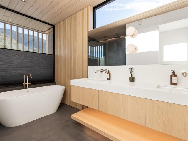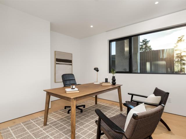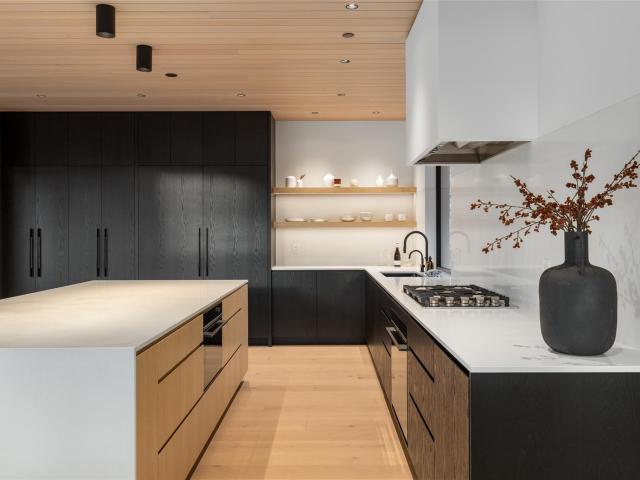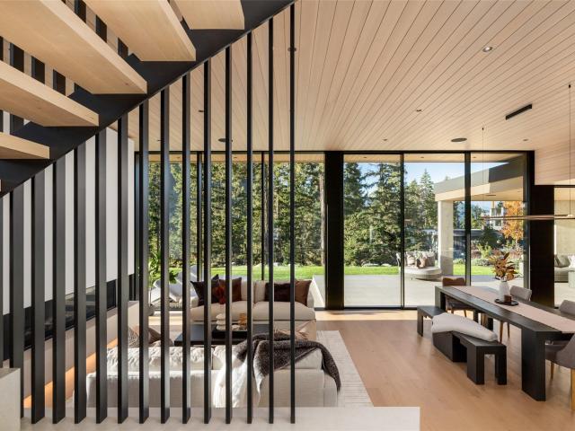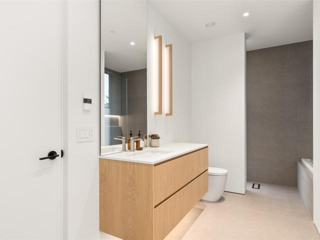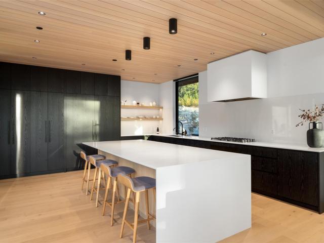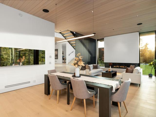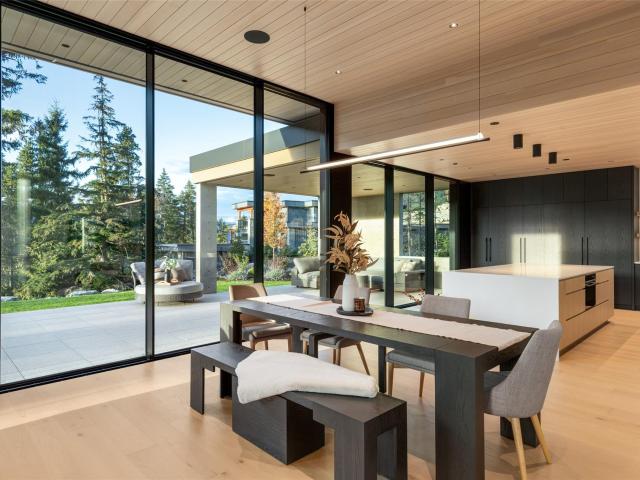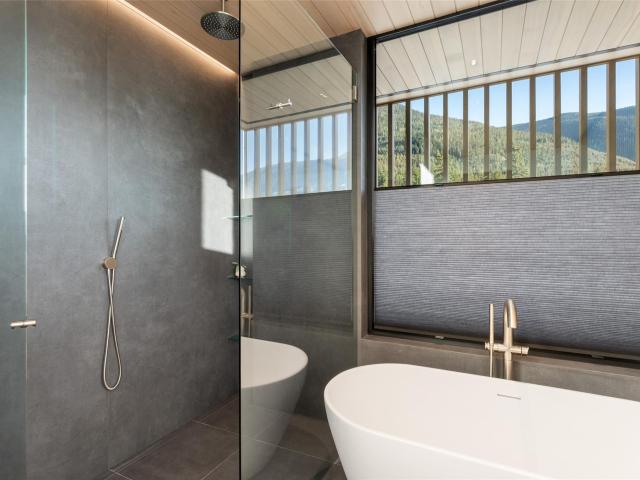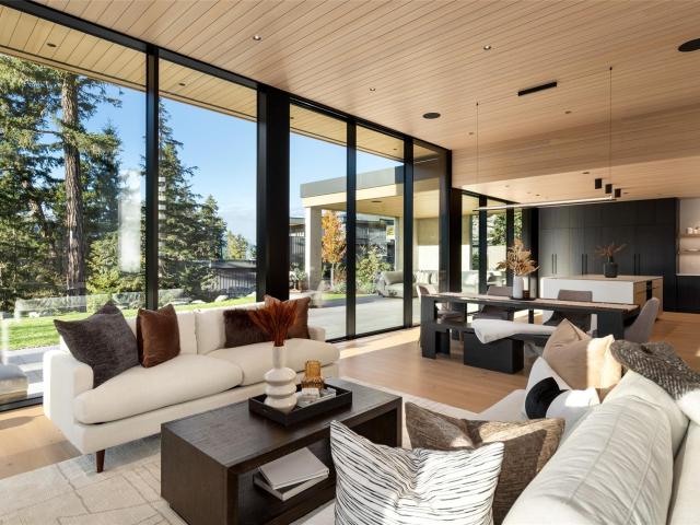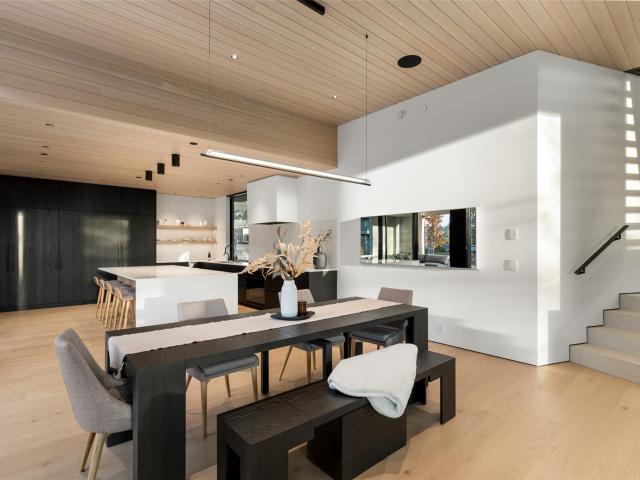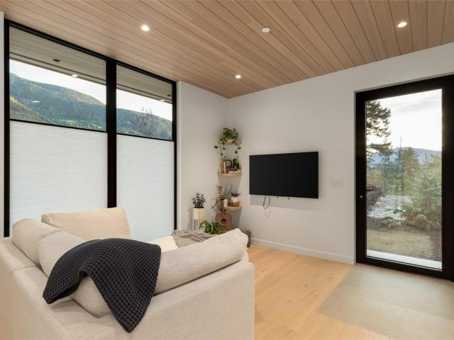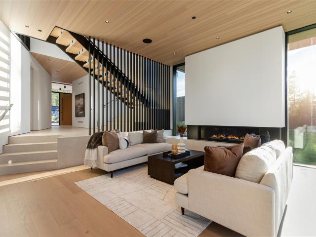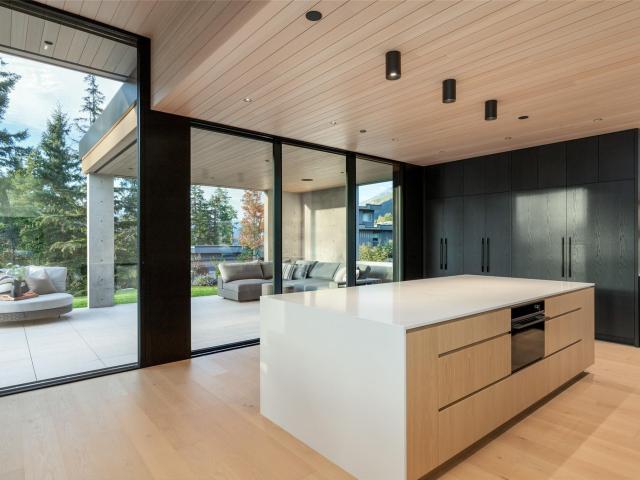 Refined mountain living with over 4000 sq ft of total living space awaits in this 4-bed + media, 4-bath modern home. The 3,402 sq ft main residence blends architectural concrete, oak flooring, and large-format porcelain tile with smart technology. European glazing and custom floor-to-ceiling doors frame mountain views and create seamless indoor–outdoor flow. A 72" fireplace anchors the open living area, while the chef’s kitchen with paneled Fisher & Paykel appliances elevates entertaining. A Control4 system manages lighting, audio, shades, and comfort. The 629 sq ft 1-bed, 1-bath coach home offers ideal guest or rental space. Exceptional craftsmanship and modern touches throughout.