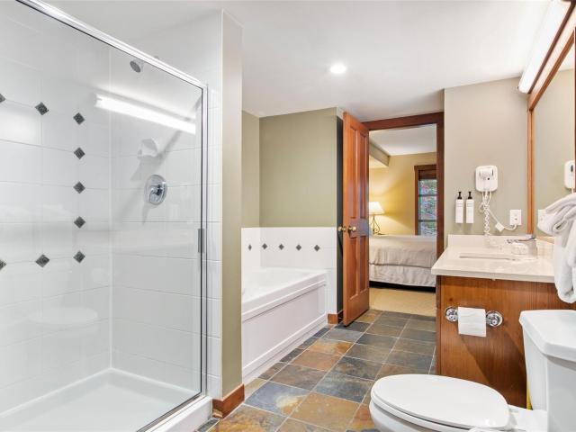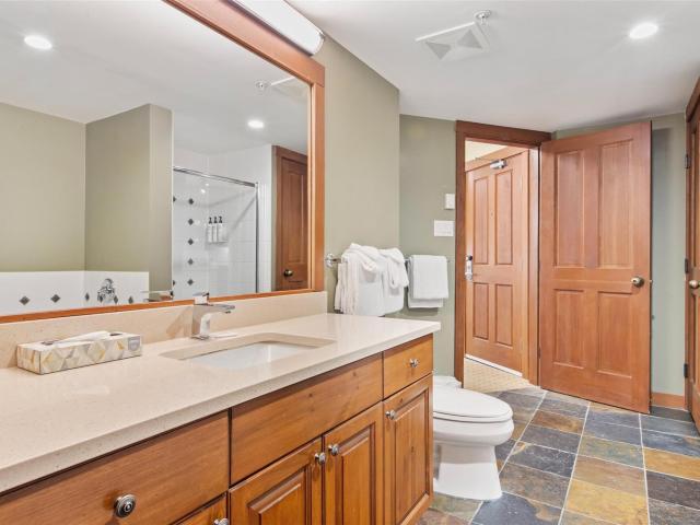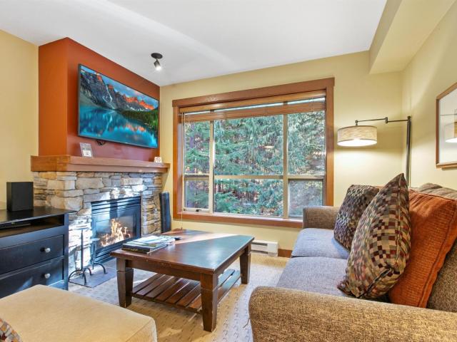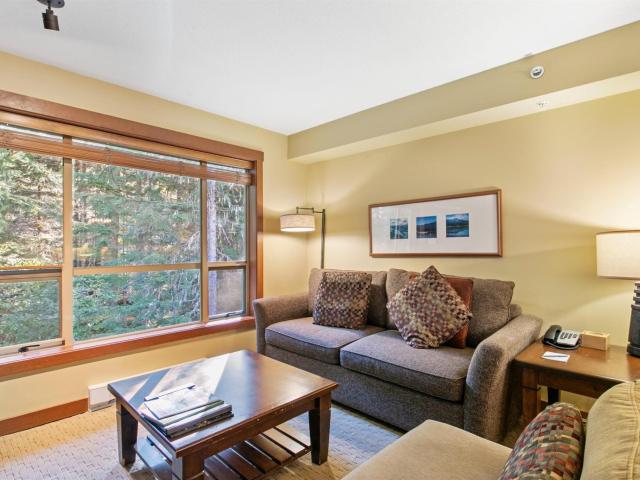 One of the best locations in Horstman House, this forest facing top-floor, 1-bedroom quarter share is a sanctuary of peace and tranquility. Blending modern design with natural warmth, it features an open layout, private balcony, and spa-like 4-pc. ensuite with a deep soaking tub. Enjoy a fully equipped kitchen and onsite amenities including a heated pool, hot tub, gym, ski storage, and secure parking. Its convenient location makes for a pleasurable stroll into the Village or enjoy the complimentary shuttle bus to the ski hill throughout the day, and the ski-home trail from Blackcomb Mountain taking you back to Horstman House at the end of the day. Ownership provides 1 week every 4 weeks, with rental income potential and a staffed front desk to cater to your every need. Monthly HOA covers utilities, property taxes, insurance, maintenance, snow clearing and landscaping.
