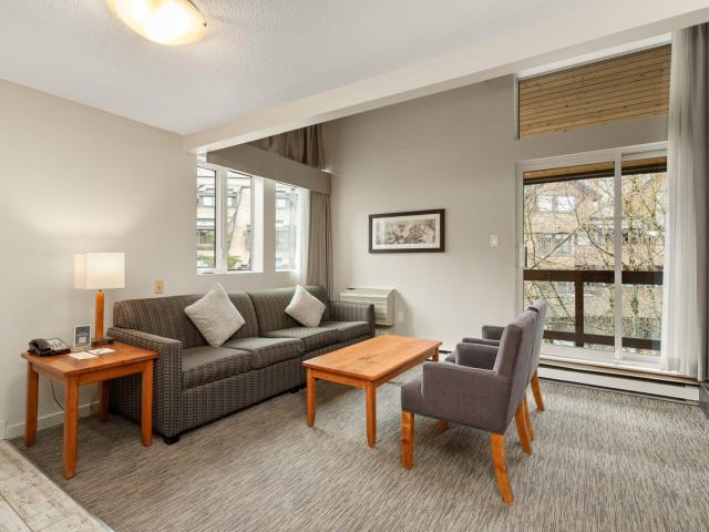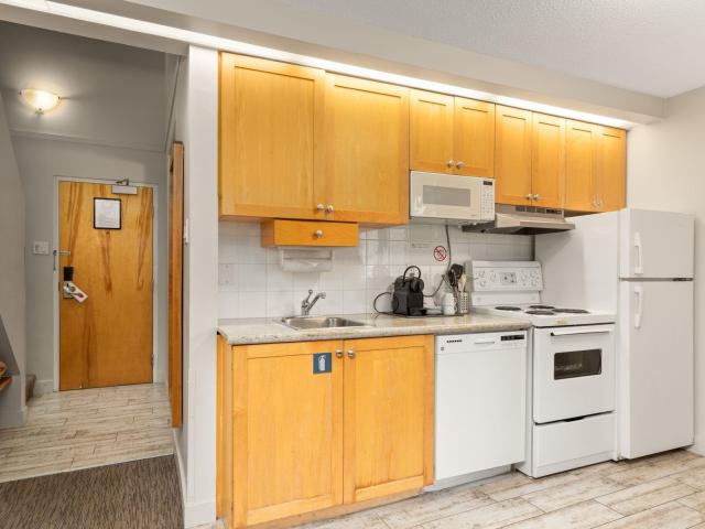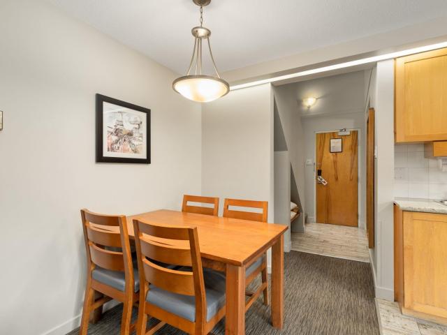 Whistler Village Inn & Suites, Powder Lodge. This bright corner studio features a welcoming living area, peeks of the mountains, and a lofted sleeping area. Steps from the base of Whistler Mountain and the gondolas. This is one of the best value entry points into the Whistler market you will find at this location. As a Phase 2 property, owners enjoy up to 28 days of personal use in summer and winter, while hotel-managed rentals generate revenue the rest of the year. Amenities include a year-round outdoor pool, hot tubs, sauna, fitness room, underground parking, and front desk service.