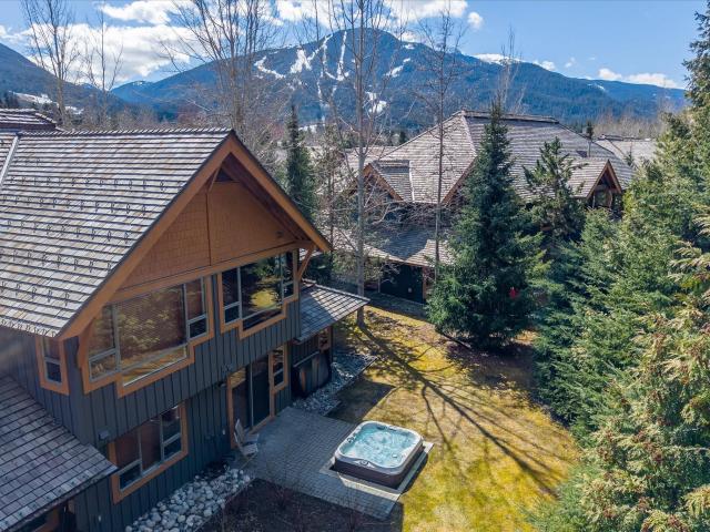 Discover this wonderful townhome in Montebello, featuring breathtaking views of the Whistler/Blackcomb Mountains and just a short stroll from Whistler Village! This exceptional corner unit offers 3 bedrooms plus a den that can serve as a 4th bedroom, along with 3 full bathrooms and an additional powder room. One of the rare properties in the village area with a garage, it provides secure parking and ample storage for your outdoor gear, with plenty of visitor parking nearby. After a day of mountain adventures, relax in your private hot tub surrounded by serene greenspace. Additional features include air conditioning and a cozy gas fireplace, ensuring comfort throughout the year. Zoned for nightly rentals, you can use it as a vacation retreat and rent it out when not in use or make it your primary residence. All this, just a short walk from the shops, restaurants, and vibrant offerings of Whistler Village. Plus, GST has been paid!