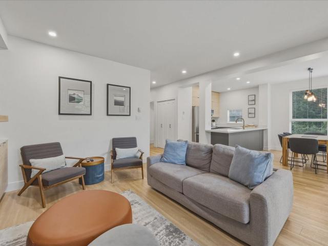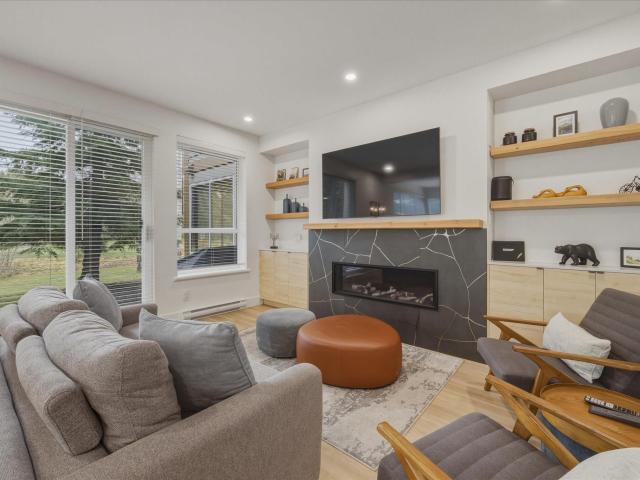 Welcome to #16 Alpine Greens! This beautifully renovated 2-bedroom, 2-bathroom townhome features modern mountain finishes throughout. Positioned along the first fairway of the Chateau Whistler Golf Course, this home is ideally situated for year-round enjoyment. As a private, corner unit surrounded by greenspace, it offers a walk-out patio perfect for outdoor relaxation. The open-concept living area is designed for entertaining family and friends, making it ideal for gatherings. Experience the best of golf course living with easy access to nearby amenities. The valley trail is right outside your door, leading you to the beaches and trails at Lost Lake, or hop on the free shuttle for a quick ride to Whistler Village and the gondolas. In winter, the ski home trail from Blackcomb is just across the street. The complex includes secure underground parking, and this property is being sold turnkey, fully furnished. GST is not applicable, and it’s zoned Phase I, allowing for unlimited owner usage and nightly rentals. Contact us today for a private showing of this exceptional townhome!